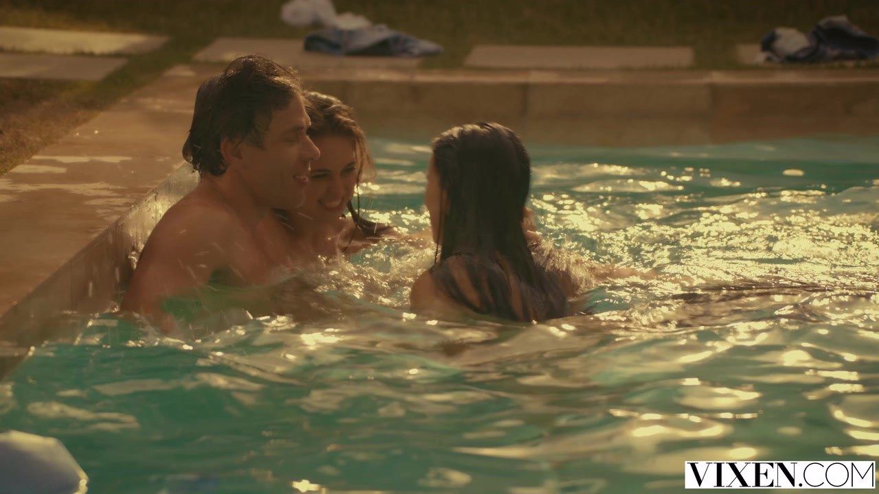 Ища адреналина, две красивые лесбиянки залезли во двор к соседу, и развлекались в его бассейне, занимаясь оральной любовью, а когда мужик к ним присоединился, он оттрахал двух сучек в жмж сексе.