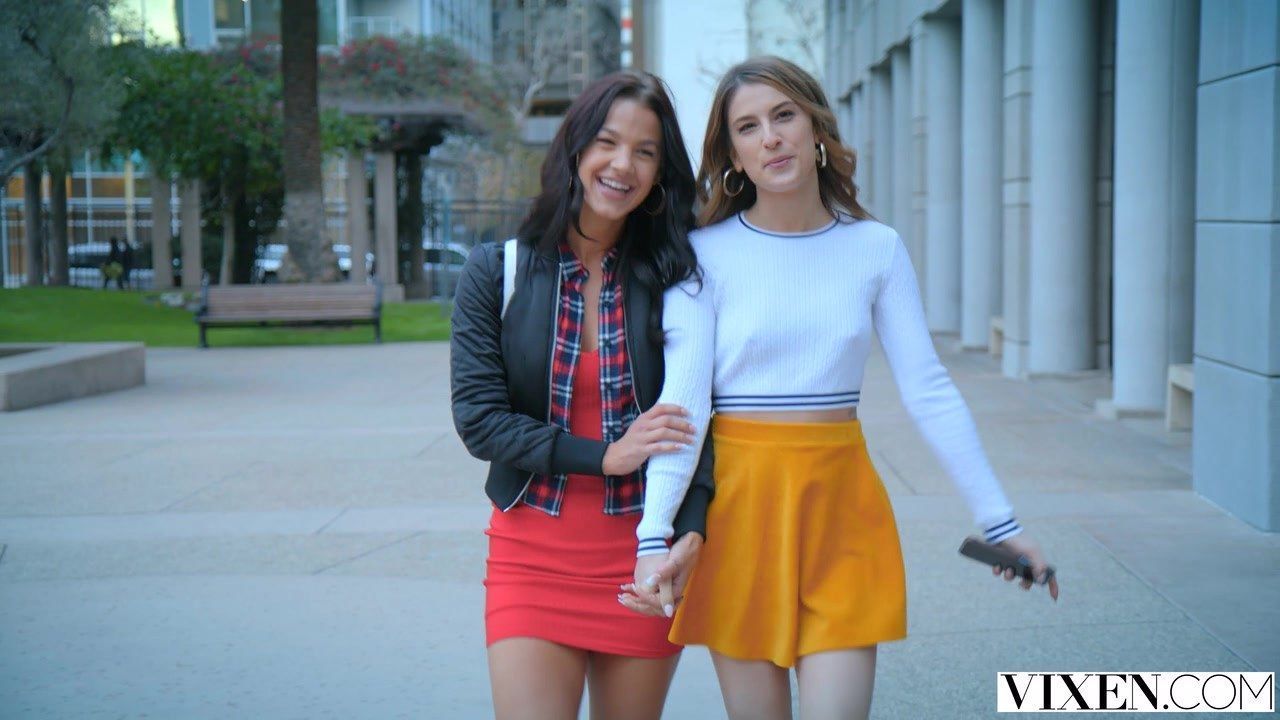 Желая потрахаться с красавчиком из колледжа, две пошлые красотки устраивают студенческий жмж секс с минетом, оргазмами и мощным кремпаем в пизду шатенки, сперма из которой капает на язык брюнетки.