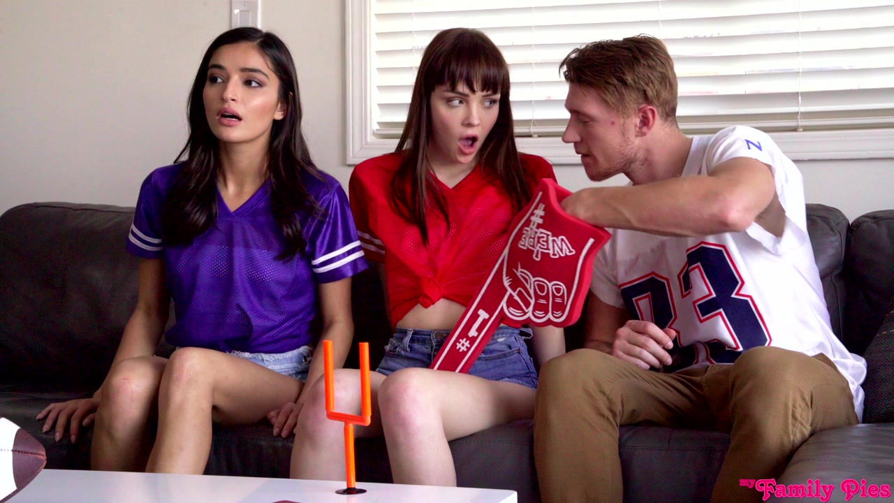 Сводный брат специально спрятал свой мощный член в попкорне, а потом предложил телочке попробовать его. Все закончилось тем, что парень отымел не только подругу, но и свою сестру.